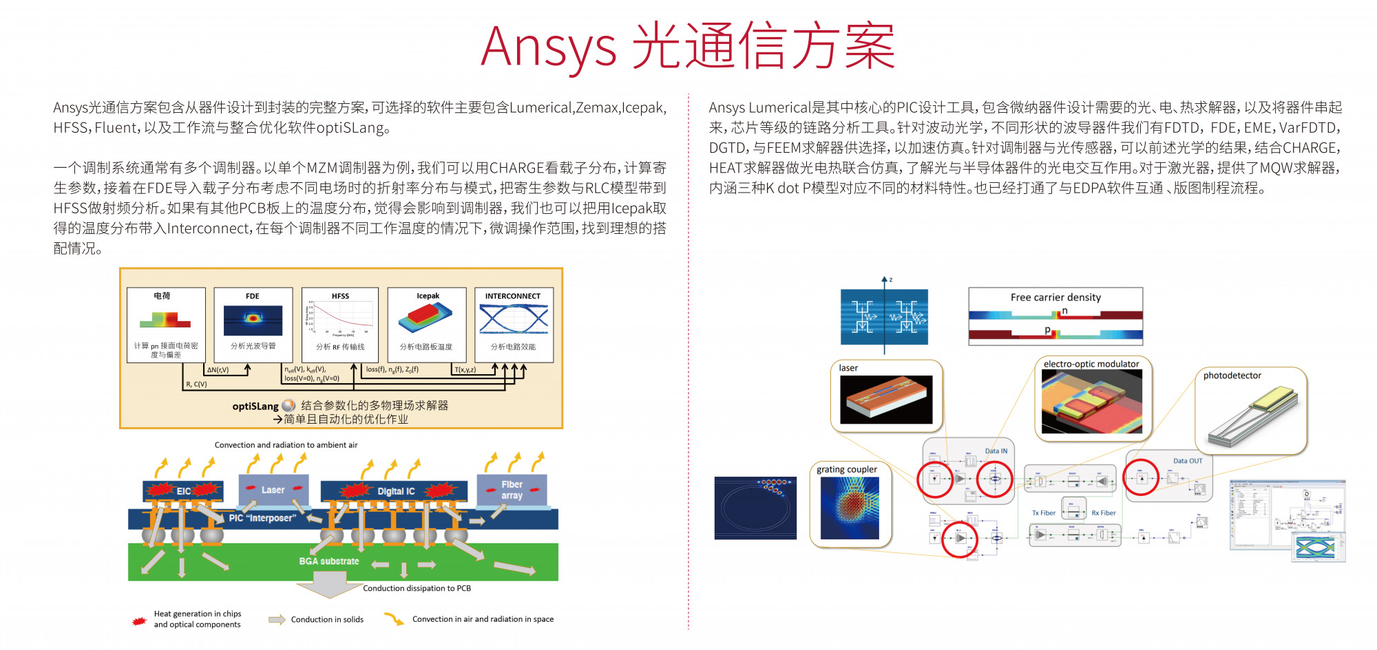 莎益博 CYBERNET 带着 Ansys 光通信方案,精彩亮相2024中国光谷·光电子博览会,Ansys 光通信方案包含从器件设计到封装的完整方案,可选择的软件主要包含 Lumerical、Zemax、Icepak、HFSS、Fluent,以及工作流与整合优化软件 optiSLang。亦将持续向大家展示品牌文化精神,赋能光电产业发展与革新。