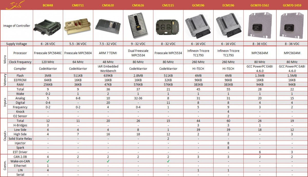 硬件电子控制单元规格列表
